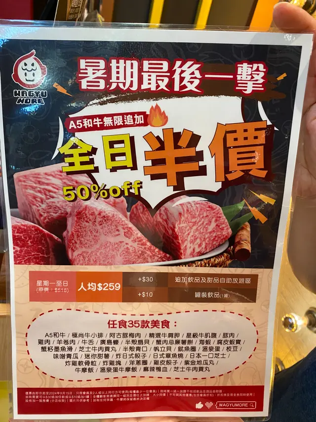除咗A5和牛,仲有其他牛肉任食,包括牛小排、牛肩肉、牛舌等。我哋仲試咗牛小排,肉質一樣好嫩,帶有一點嚼勁,十分過癮。牛舌就更加特別,切得薄薄的,煮熟後的口感滑順,配上少許調味醬,真係好好味。當然,雞肉和羊肉都唔可以錯過,雞肉嫩滑,羊肉味道濃郁,絕對係好選擇。