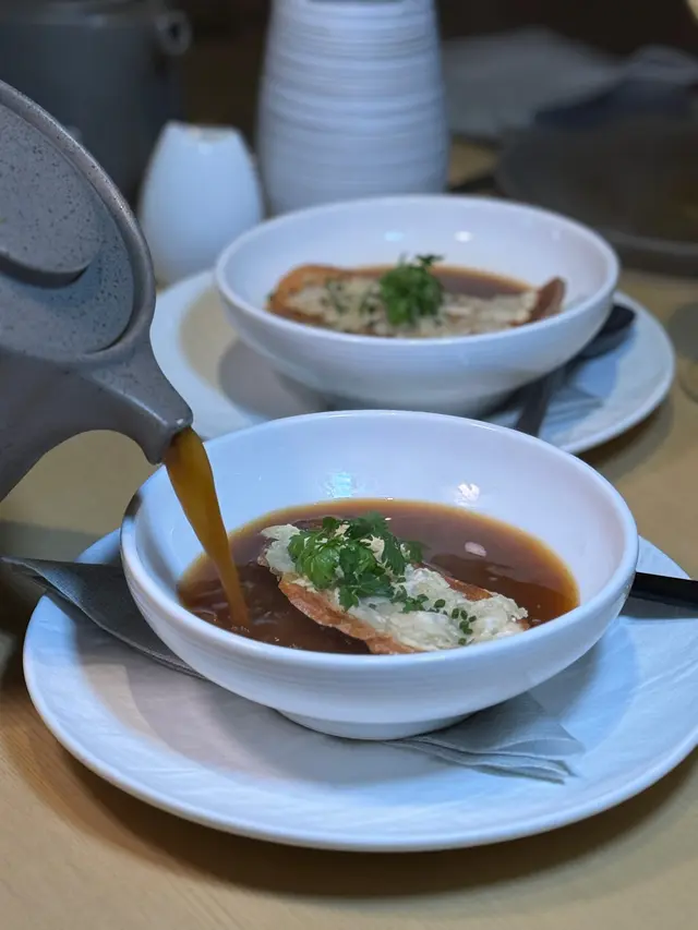 法式洋蔥湯裡洋蔥甜味精華全部溶到湯裡😬配上酥香的麵包和芝士🥰一定要趁熱飲啊😊