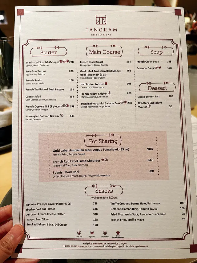 今晚應朋友邀請黎到位於灣仔AKI酒店二樓餐廳TANGRAM🤗呢間餐廳由法藉廚師主理融入摩登元素既菜式🧑‍🍳裝修方面以簡約木系設計🥰開放式廚房仲可以一睹廚師製作美食添😎