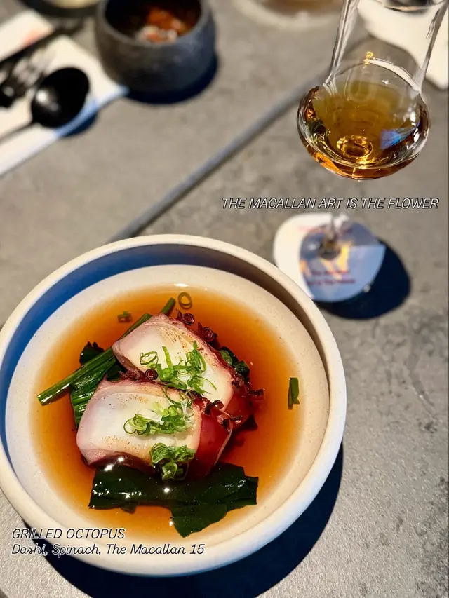 而AOAO今次嘅wine pairing menu又帶俾我新驚喜,選用多款食材、用料高級新鮮 - 由三文魚、豚肉、雞翼、粟米蔬菜蒟蒻、八爪魚、和牛等,每一道菜嘅sequence 帶出整頓晚餐嘅平衡,當中嘅幾款菜式或醬汁好適當咁運用咗唔同嘅Macallan 提升食材味道並刺激味蕾🤤👍🏼