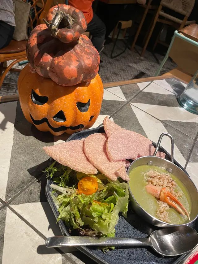 頭盤係一個蟹肉抹茶白咖喱米通