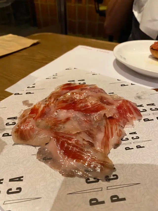 之後叫咗個52個月嘅ham,都諗住會好鹹㗎啦,話晒都52個月,就係想試吓佢有幾鹹!一嚟到見到超級多肥肉,勁多油喺面頭!食落口可能因為好多脂肪,開頭食落去係唔係好鹹,越食越鹹,但呢個行到我覺得可以接受,反而唔係咁鍾意好多根!