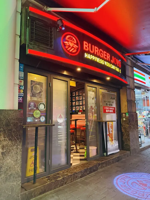 灣仔地鐵站出嚟行幾步就見到呢間burger joys,做緊1Pint Asahi送2隻雞翼嘅優惠,都吸引唔少人收工入嚟坐吓。
