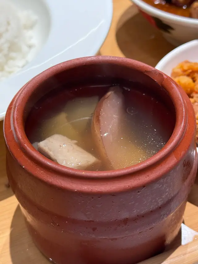 養生燉湯 一碗好嘅湯真係勁加分 入邊仲要勁足料 瘦肉雪梨湯 清清甜甜 飲落好舒服 唔係啲味精湯🥰