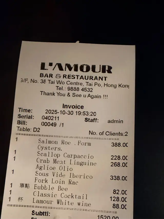 新鮮生蠔配泡沫同魚子,有金箔鋪在上面,入口滑溜鮮甜,泡沫有少少酸味,作為開胃菜幾好。