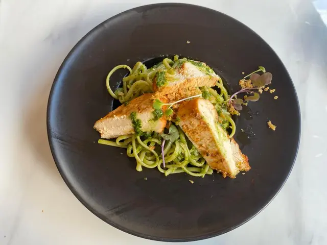 主菜有香草醬烤雞扁意粉($138),份量都頗大,熱度十足,扁意粉軟硬度適中,每條意粉都沾上香草醬,厚切的烤雞塊都不會燒得乾巴巴。