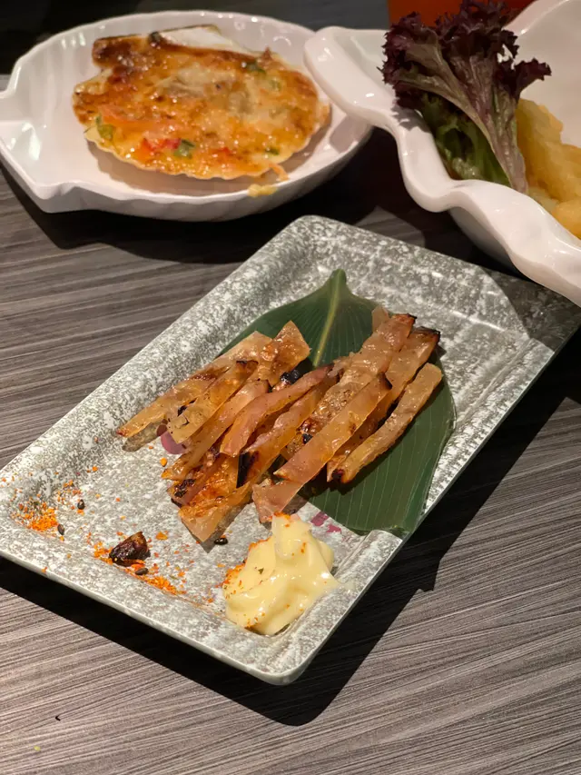 熟食有雞翼、牛舌、牛柳粒、燒北海道帆立貝、天婦羅等等