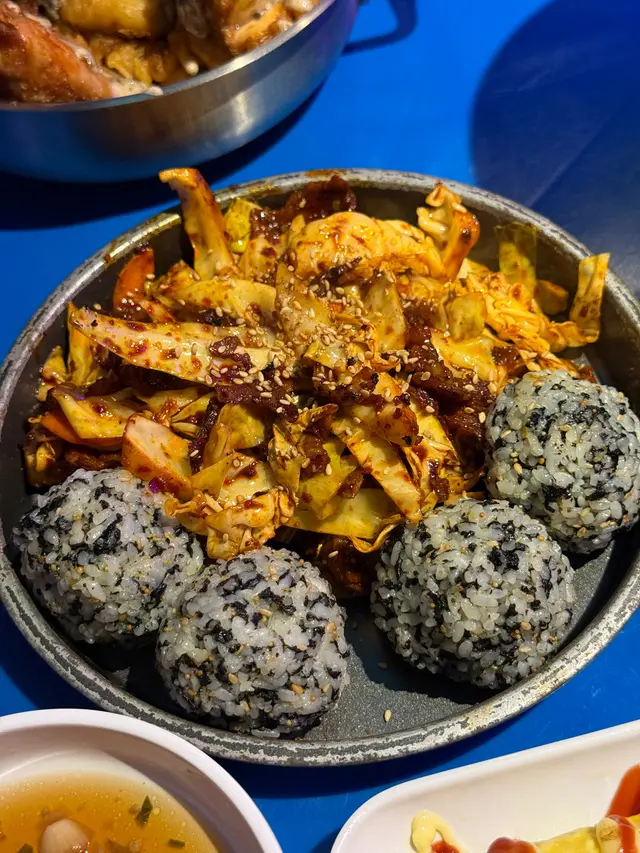 甜辣醬炒椰菜豬軟骨脆片真係好惹味,爽脆嘅口感後勁強勁嘅韓式甜辣醬🌶️好食到停唔到口!拳頭飯本身已經充滿海苔芝麻香,索埋辣汁味道更加有層次👍🏻