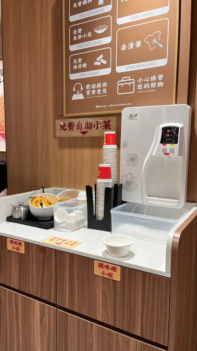 未夠7點去到已經坐咗八成滿,真係受歡迎!店舖算幾闊落,光猛又乾淨。佢有提供配料自助區,食水自助區,櫃桶底仲有免費紙巾提供,好體貼!