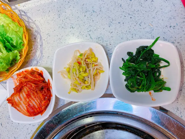 一坐下立即有韓式前菜,包括有泡菜、豆芽、菠菜🥢開胃好食!😋