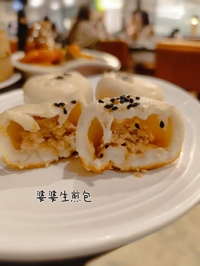微微發酵的麵皮,經水煎焗後漲成圓鼓鼓的外殻。焦脆的底包,咬開後是含湯汁的鮮肉餡。老實說,一碟三件意猶未盡。