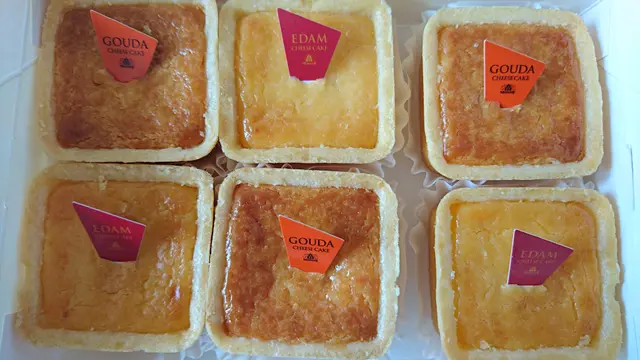 The cheese tarts come in two types of cheese: Gouda and Edam. I bought six, three of each flavor. The Gouda was darker in color and had a stronger cheese taste. The Edam was sweeter and a lot more creamy. Each had a slight taste of lemon. The tart shell was soft and crumbly. These were really excellent! Boyfriend reheated one in the microwave and they were even better as it had a custard like consistency. These were good cold or warm.