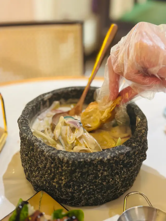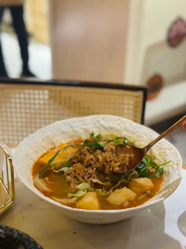 以椰汁為基礎,燉煮出濃郁既叻沙湯底,青口的鮮美同炸油炸鬼既脆卜卜相互融合,係咁將油炸鬼店落去d椰汁, 原來又幾好食喎!