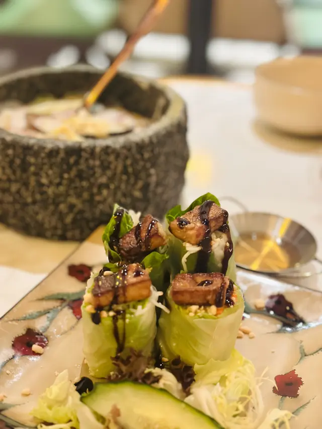 鵝肝的口感豐富搭配上青蘋果的脆爽,再包在係米紙,口感好新穎,出奇地夾!!
