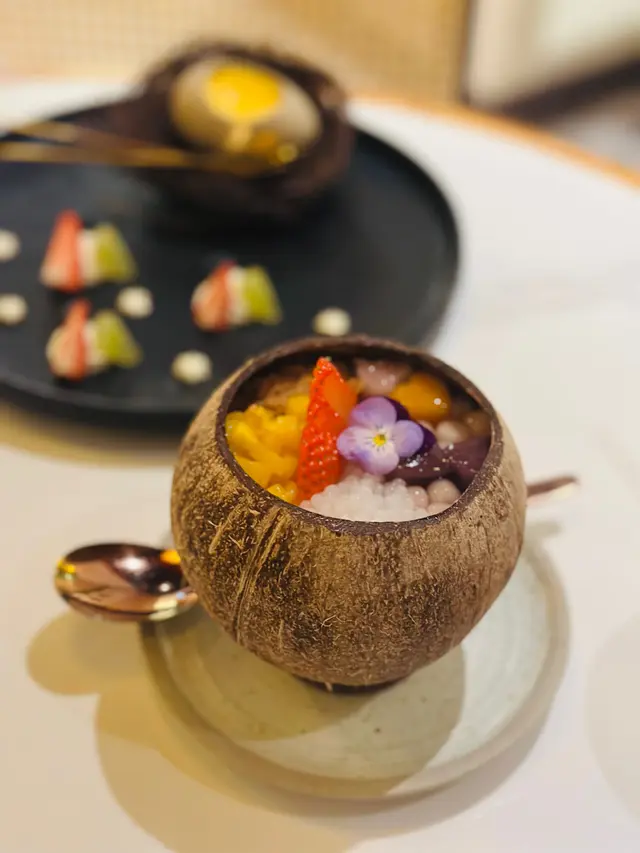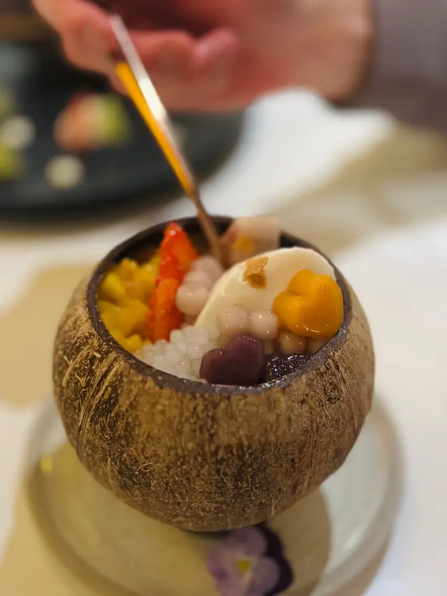 最後就係dessert, 個樣好精緻做得好吸引呢!! 芋圓椰汁凍, 見到好大舊奶凍, 同埋好多西米水果, 芋圓仲要係心形架, 入口幾煙un, 不錯.