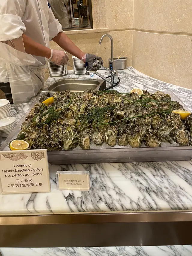 有人serve 即開美國生蠔🦪(每人一次三隻),蟹腳, 螺,蝦,芝士,ham 咁都ok