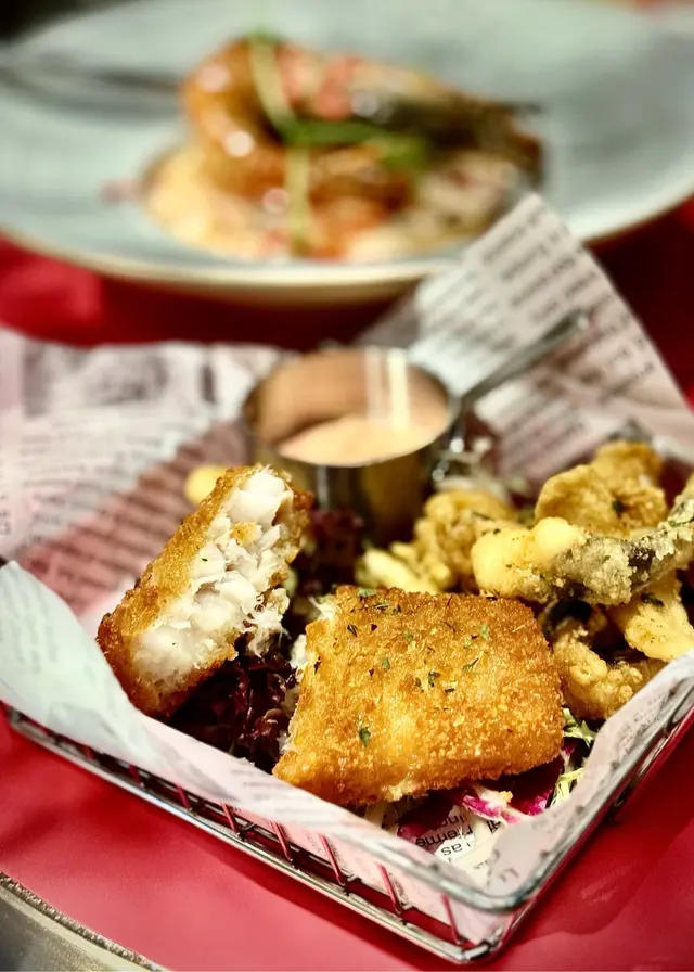 🔸酥炸紐西蘭南鱈魚配唐揚紋甲魷魚鬚