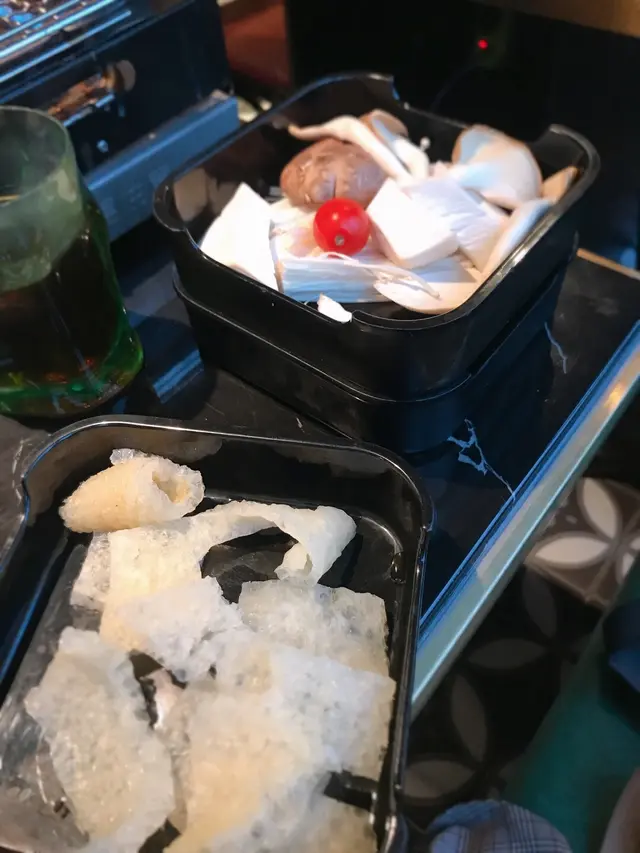 跟住就到打邊爐,打邊爐可以自己入紙揀想食咩嘢,火鍋配料嘅選擇都好多,有蒲頭島牛拼盤,牛肉粒,醉肥牛片,醉雞,田雞腿,大蝦雲吞等等,而其他蔬菜類,菇類同丸類就係自由係出面雪櫃拎的!所有火鍋配料嘅份量都好的骰!一份唔會太多,非常好!其火鍋配料有田雞腿同牛肉粒都算特別(我諗如果配麻辣火鍋仲正),而大蝦雲吞同水餃都唔錯!