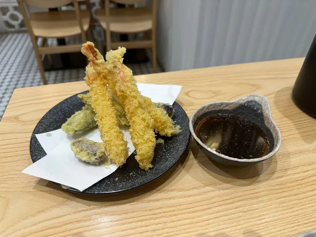 **天婦羅**:炸蝦🍤、炸BB薯仔🥔、炸青椒🌶️。炸得剛剛好,外皮酥脆,裡面的食材也非常新鮮,口感一流。🍤🥔🌶️
