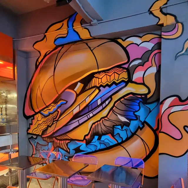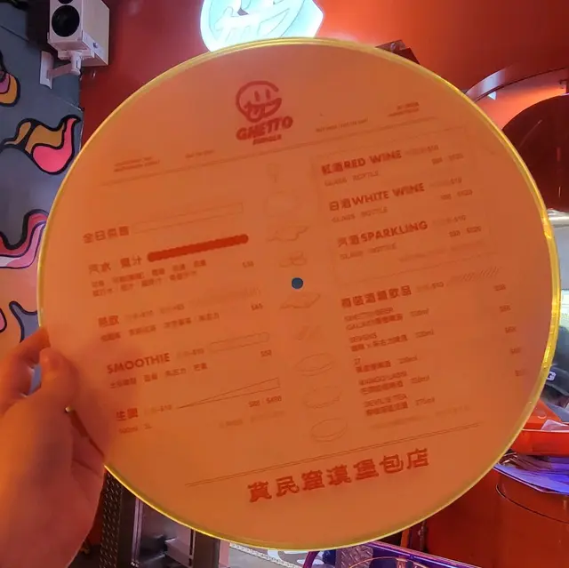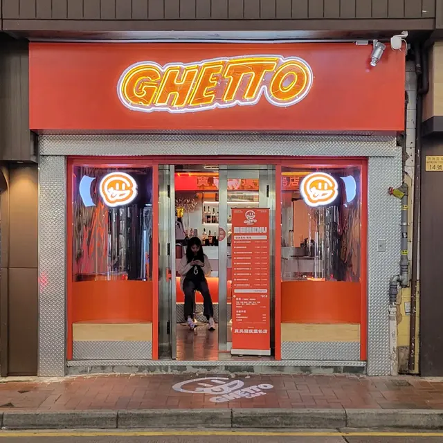 「GHETTO」意思是貧民窟,銅鑼灣分店同樣以HIPHOP文化為主題,以鮮橙色作為主調,餐廳處處充滿街頭文化,包括彩色塗鴉牆,以及美式街頭風格裝置,連menu都係以黑膠唱片作為設計,打卡一流!