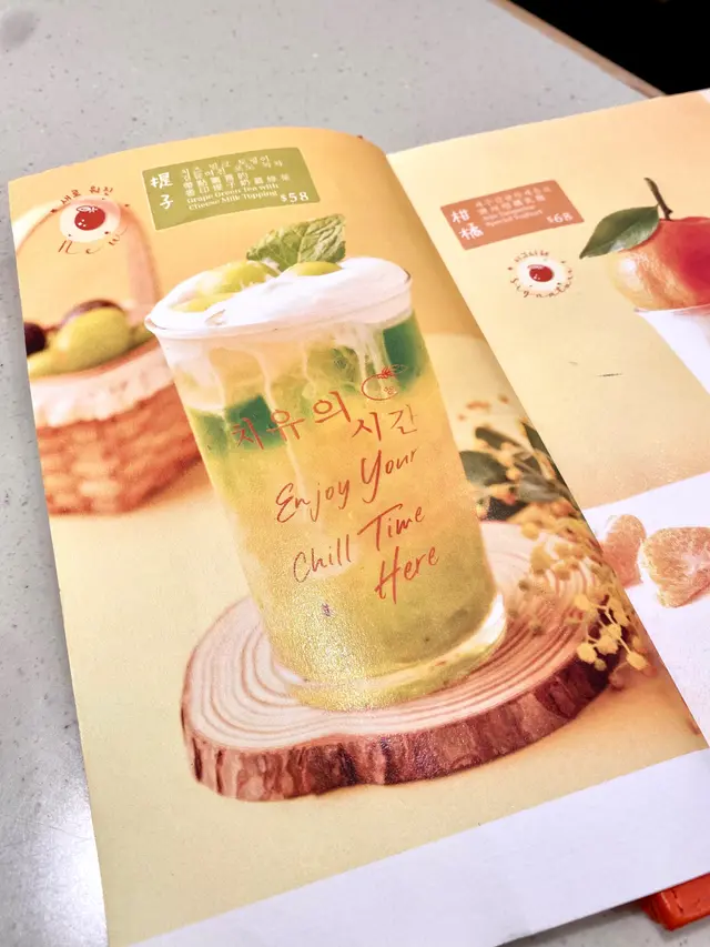 原本想飲的香印提子奶蓋綠茶已售罊, 就改為飲每枱都有叫一杯打卡的柑橘乳酪飲品, 酸甜味道令人開胃