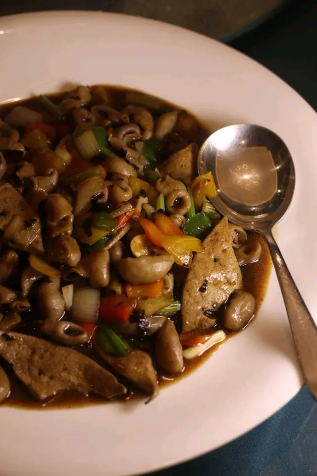 ✓ 豉椒炒鱘龍扣配黃沙豬潤 Pig liver handled beautifully—no off smells, cooked just right