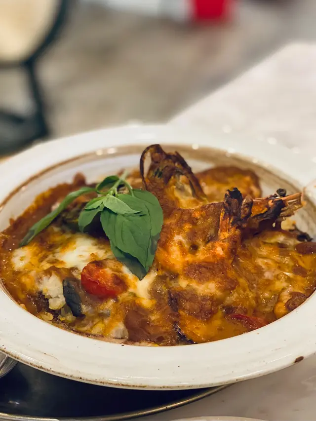 入面材料非常豐富而且亦夠新鮮,有蝦、魷魚、青口等等,再加埋番茄和芝士一齊焗,味道好獨特,啲口感微辣,又有酸甜味,混合埋一齊食超級好味。