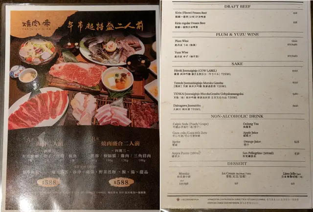 食肆主打以卡座設計,座位寬敞舒適,暖調燈光柔和輕鬆。店內主打和牛燒肉OMAKASE,當然亦有其他的套餐選擇。我喜歡光顧非放題的日式燒肉,一來質素有一定保證,二來可以吃到一些比較少有的部位。如果有專人幫手燒當然更好,畢竟我們都不是燒肉的專家,什麼部位用怎樣的火喉是一門學問,所以我一向信奉 “讓專業的來”。
