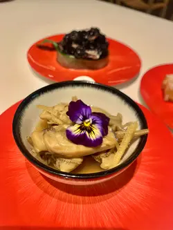 Nicely decorated with flower and tasted like dried oysters