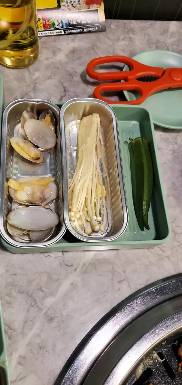 頭盤已送上一片厚厚的M5和牛,好有牛味,肉質鮮嫩,好好食,和牛仲可以任叫,好低食啊,最後我們共吃了4大塊,好滿足。醬油牛肋肉也是不錯,雖是醬油但不會好咸。另還附上兩隻鮑魚,燒鮑魚有提示只需燒7分鐘便可,燒完都好鮮嫩好淋,可惜呢個不是任食。仲有燒菇類,燒出來好有咬口,比起打邊爐更能吃到各種菇的味道。