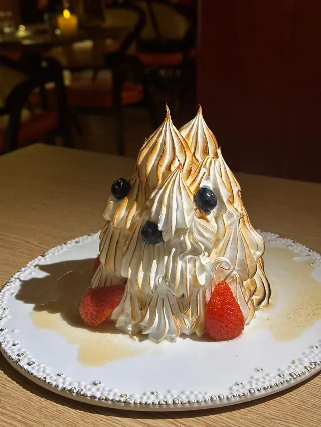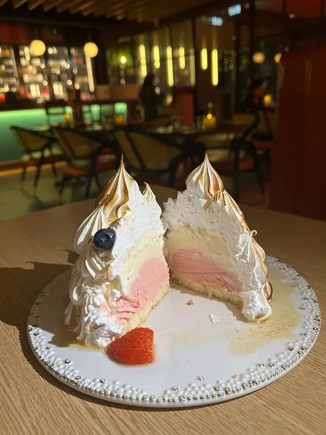呢個甜品必點‼️兩個女仔食完超飽😂建議可以多啲人share,淋完火焰有陣好香嘅酒味🔥入面係士多啤梨雪糕🍓同埋吉士~