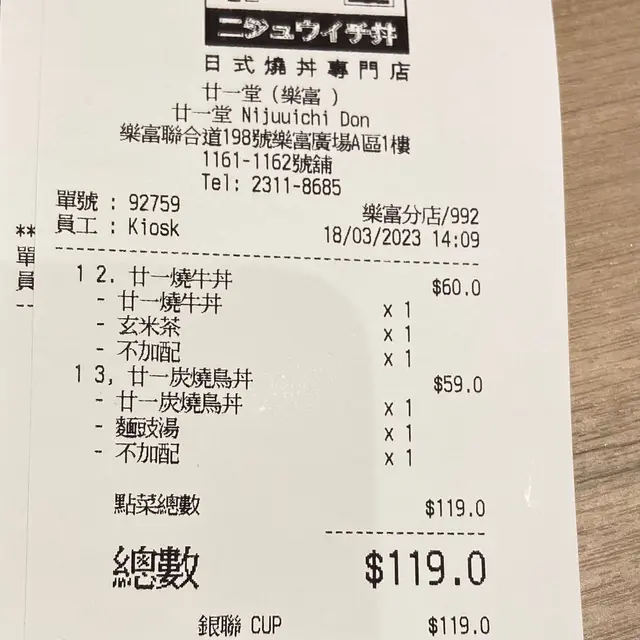 廿一燒牛丼 玄米茶 $60