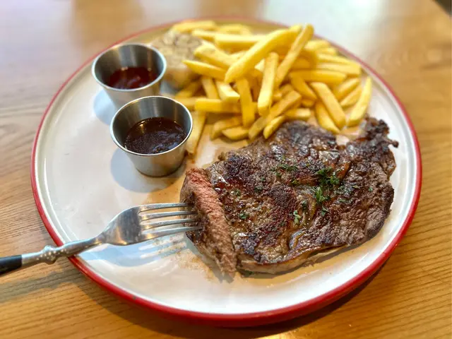 牛味濃郁油脂豐富肥瘦相間,我哋叫咗七成熟口感細嫩風味獨特,而且薯條份量好多好飽肚!醬汁係黑松露紅酒醬汁味道一流!
