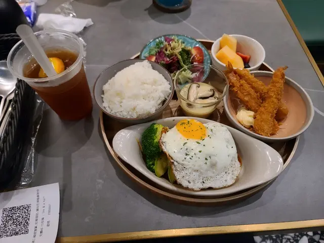 dinner set 好抵食, 今次叫左和風芝士漢堡扒吉列大蝦配飯。 吉列大蝦應該係新炸, 食嘅時候仲係勁脆。 漢堡扒唔係一般超市有個種, 佢好有肉味, 好有肉汁, 配埋芝士食, 真係好夾。另外跟餐嘅生果新鮮, 沙律都唔錯, 湯冇咩驚喜, 不過夠熱。