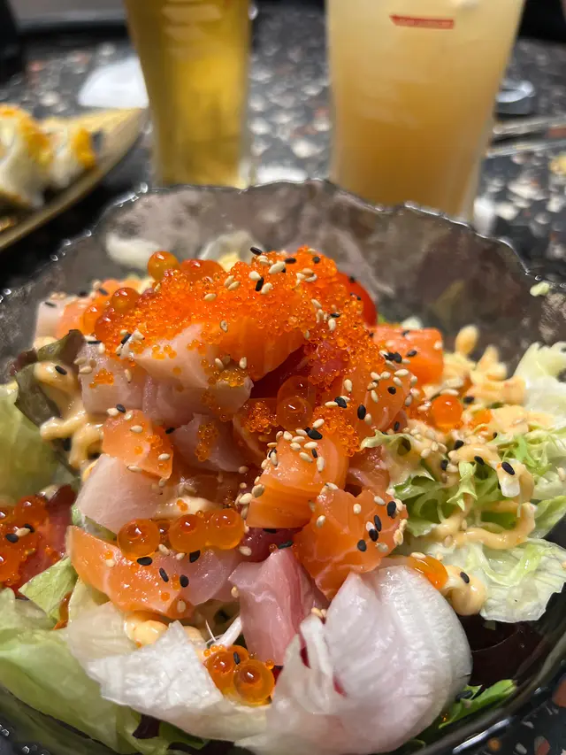呢個沙律認真抵食,有多款角切刺身仲有三文魚籽同蟹籽,豐富既口感仲有刺身沙律好fresh既感覺🥗