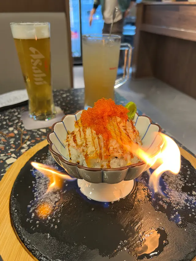 呢個火山好有睇頭,真係成座火山咁,店員攞上枱時會點火燒著座山,佢裡面係有帶子,青瓜,牛油果,蟹柳,面頭仲有蟹籽,雖然佢係卷物,我感覺佢似個小型丼飯咁,我最鐘意佢有牛油果係入面🥑