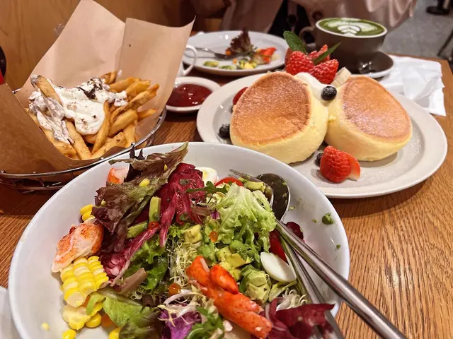 梳乎厘口感軟綿綿超好食,蛋味好香,士多啤梨香蕉酸酸甜甜混合一齊好正😍😍難怪佢被稱為必食既pancake ,食完好滿足,最鐘意佢有空氣感,食落唔會好飽肚