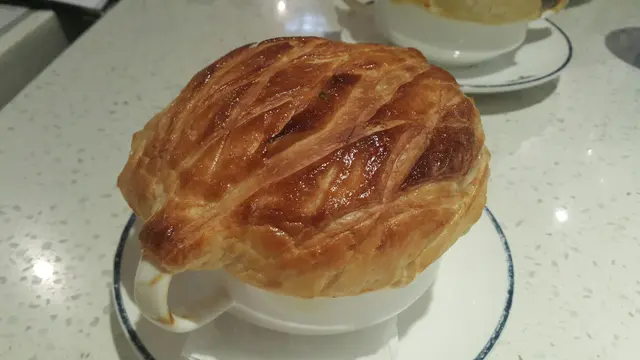 要了兩個野菌濃湯,面層的酥皮香脆不油膩,湯濃稠,其中加黑松露的味道更是特出,好評。