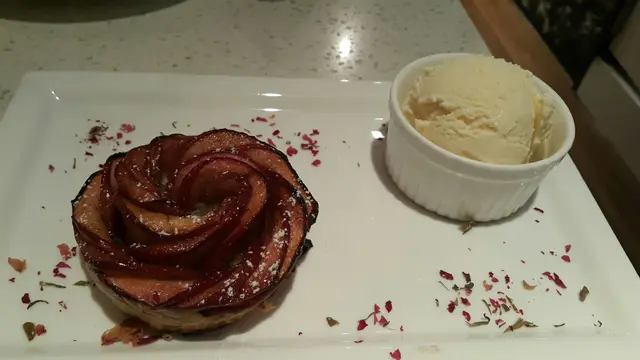 他的酥皮很值得一讚,不論是酥皮湯還是蘋果批餅底都維持了不油膩的特點,但同時又保留了酥皮該有的香脆,果肉經過處理配上雪糕,味道和口感都上佳。