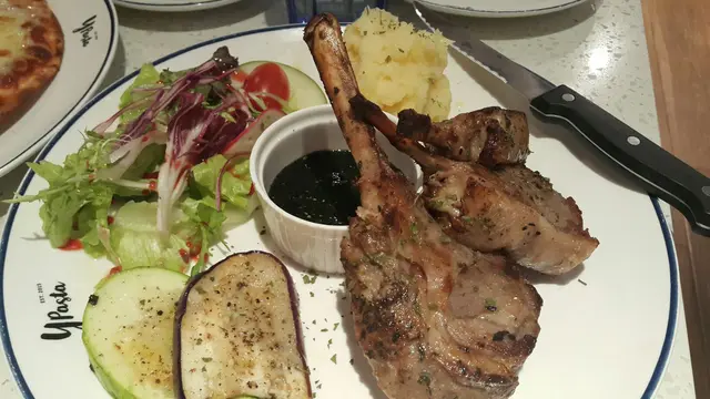 羊架份量可觀,值得一讚的是選料,肉質軟嫩,香草汁帶酸,中和羊架的膩味,亦頗有水準。