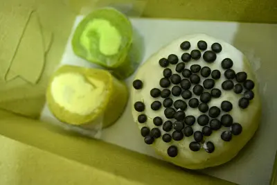 這個一點都不比抹茶口味的失色!蛋糕是一樣的柔軟,奶油的焦糖香味突出,吃下去比抹茶更甜蜜;雖然是小size,裡面也有新鮮香蕉肉增加口感,一點都不馬虎,吃的很滿意!