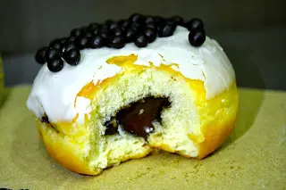 咬下去,冬甩密度頗高,質感帶韌勁卻又不失鬆軟,咀嚼的時候麵團的甜味慢慢在嘴巴里散發出來,水準很為不錯!中間的朱古力餡料是人吃人愛的Nutella,配著吃味道甜膩迷人,喜歡!