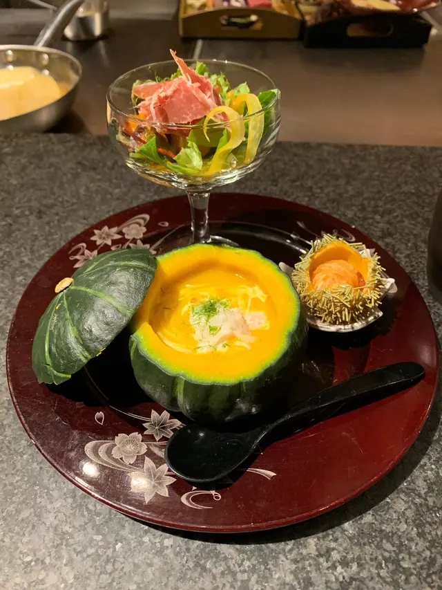 還有值得一讚的是前菜,那個蟹肉南瓜湯很新鮮很好味,還有一個炸物做到好似一個海膽咁的也很特別。