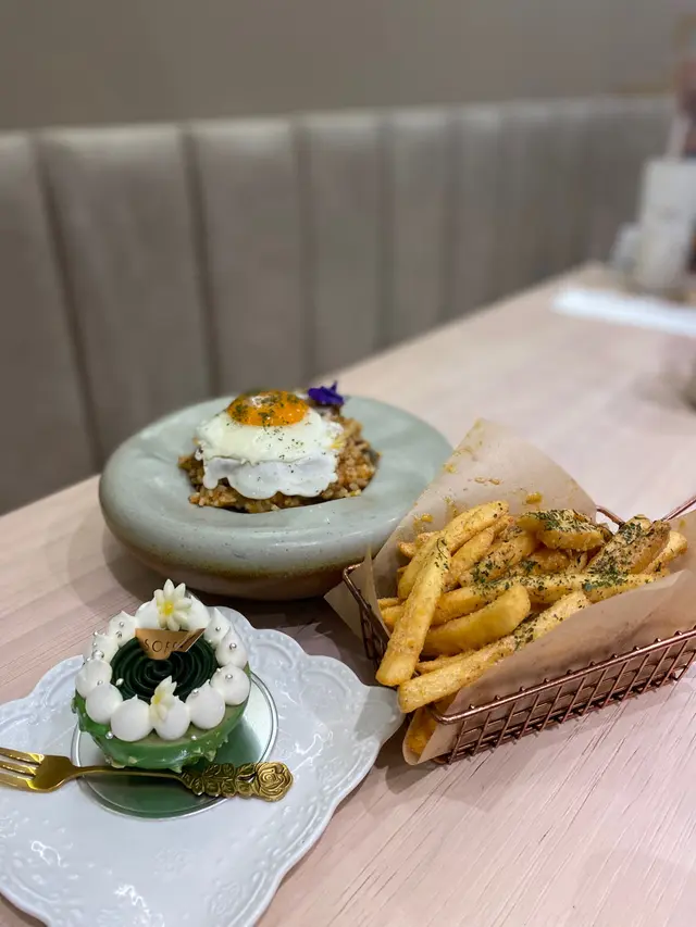 蛋糕櫃每件蛋糕都非常精緻,味道特別,真係想每樣都試哂。抹茶控嘅我,首選<日本宇治抹茶麻糬蛋糕>!小小蛋糕非常有層次,外層有抹茶朱古力薄脆,topping有特濃抹茶忌廉,最內層有Q彈麻糬,每一啖都有唔同食感,且抹茶味香濃!