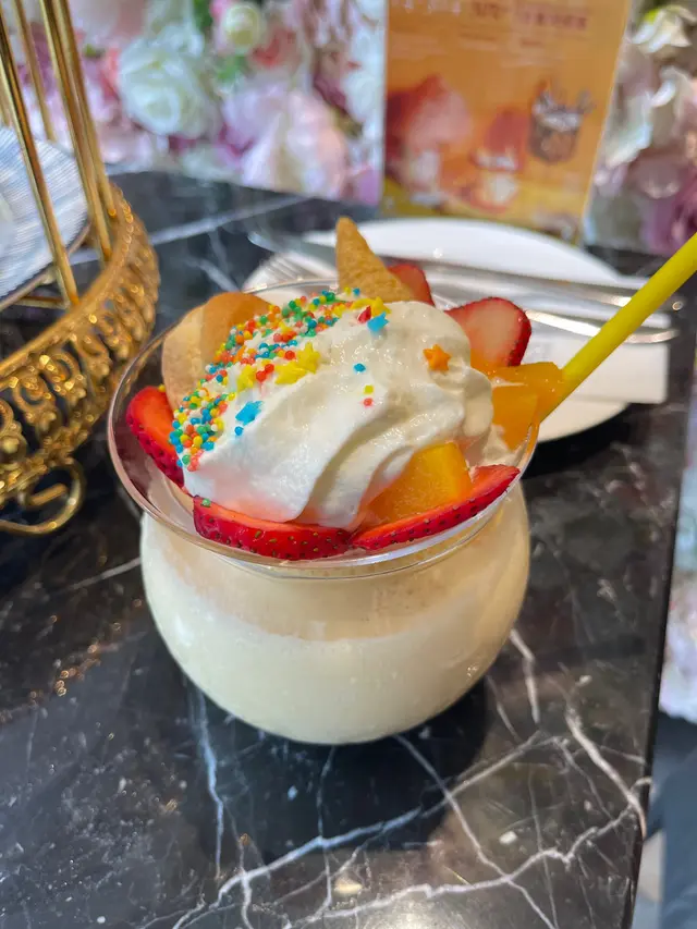 媽咪嘅Wonderland 係桃色乳酪配生果,佢飲晒成杯🤣