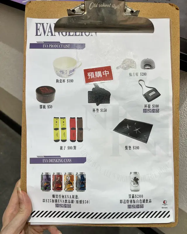 另外,仲會推出動畫或卡通既精品,今期主題係Evangelion福音戰士🤖,精品有餐墊、陶瓷杯、cap帽等。
