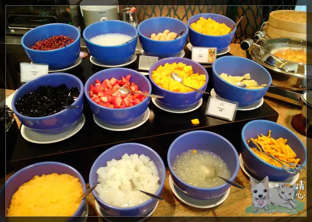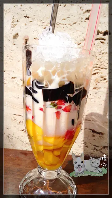 同埋好多種新鮮生果 , 刨冰配料係度
