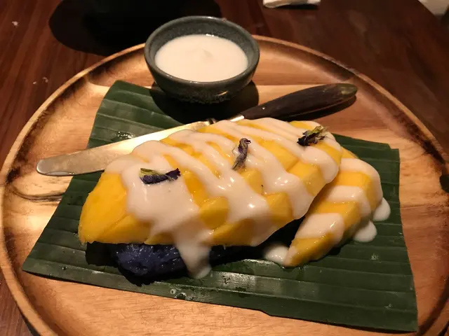 For dessert we had the Khao neaw ma muang, the famous Mango with Sticky Rice and Coconut Cream. The rice was of a interesting blue color, which might be coming from the butterfly pea flower, which was now getting popular to be made into a herbal tea, but I did not find out from the staff. The mango was fresh and sweet, and the coconut cream luscious. This to us offered a good wrap up for the dinner.