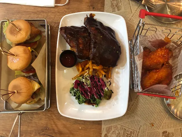 🐷燒烤醬燒豬肋骨: 有兩塊咁多, 仲要有啲厚身, 真係好抵食。淋身易切易咬, 而且肉質唔錯, 幾juicy。好鍾意嗰個醬, 甜而香, 好夾豬肋骨。仲有沙律同薯條配送, 真係好開心、好滿足。