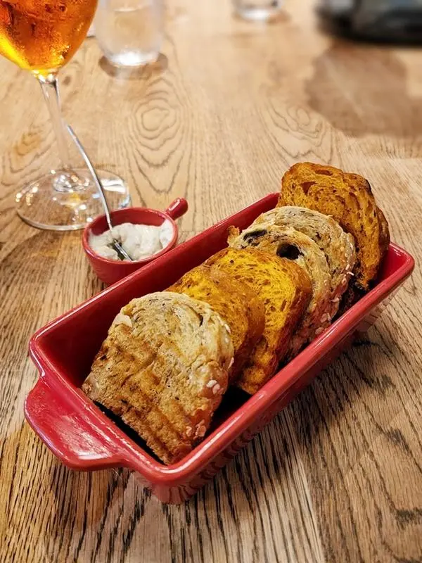 先以自家製餐包配松露巴馬臣芝士醬打開序幕,這天的合桃提子包及香草蕃茄包好香口呢﹗